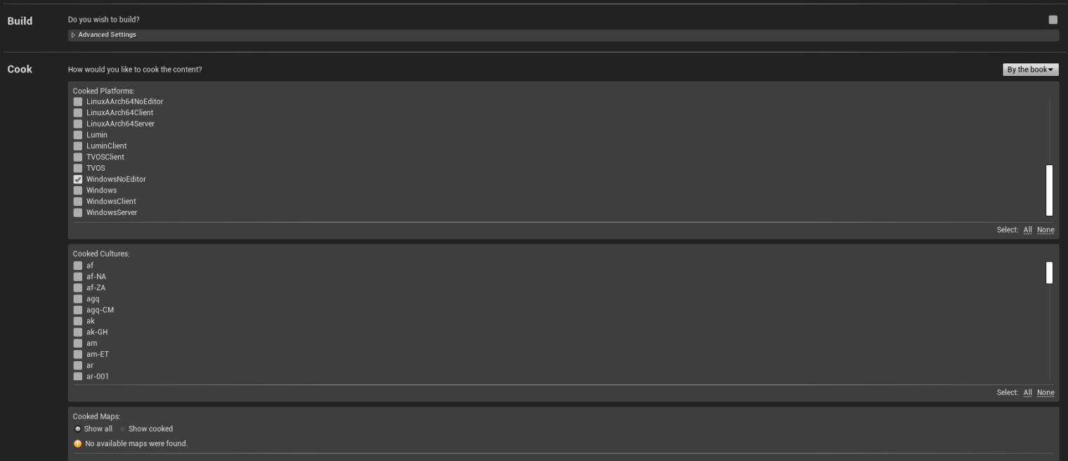 10) On The "Cook" section, everything needs to be unchecked except for "WindowsNoEditor".