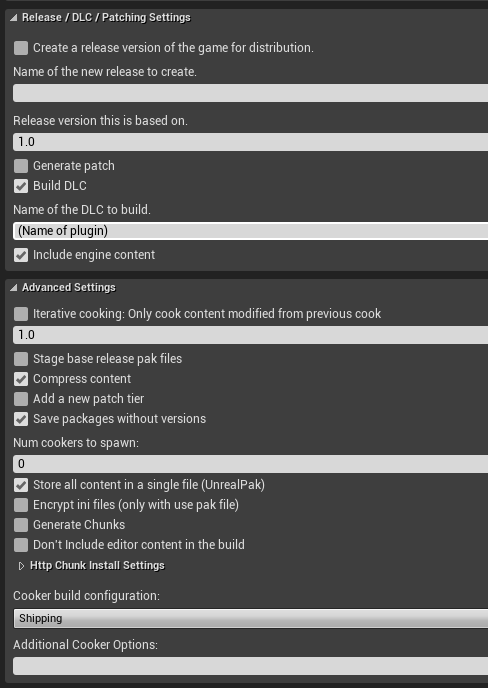 11) Open the "Release / DLC / Patching Settings" section and at "Name of the DLC to build" enter the name of your plugin.