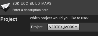 8) Make sure your current project (VERTEX_MODS) is used. If it's not set, then do so by navigating tothe project's folder and selecting the VERTEX_MODS.uproject file.