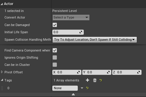 Go to the "Actor" section of the "VertexPlayerStart" object and then to "Tags".