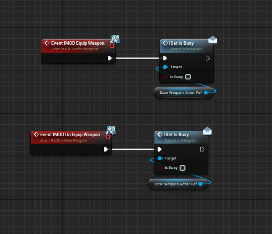 10) When you equip your weapon in the game, the game sets it to "Busy". This is so if you have a weapon which has an equip "animation" or sequence, you can't spam it. That also means that you MUST set busy to "false". No matter how you use the equip and unequip events, you always need to set busy to "false" using this node.