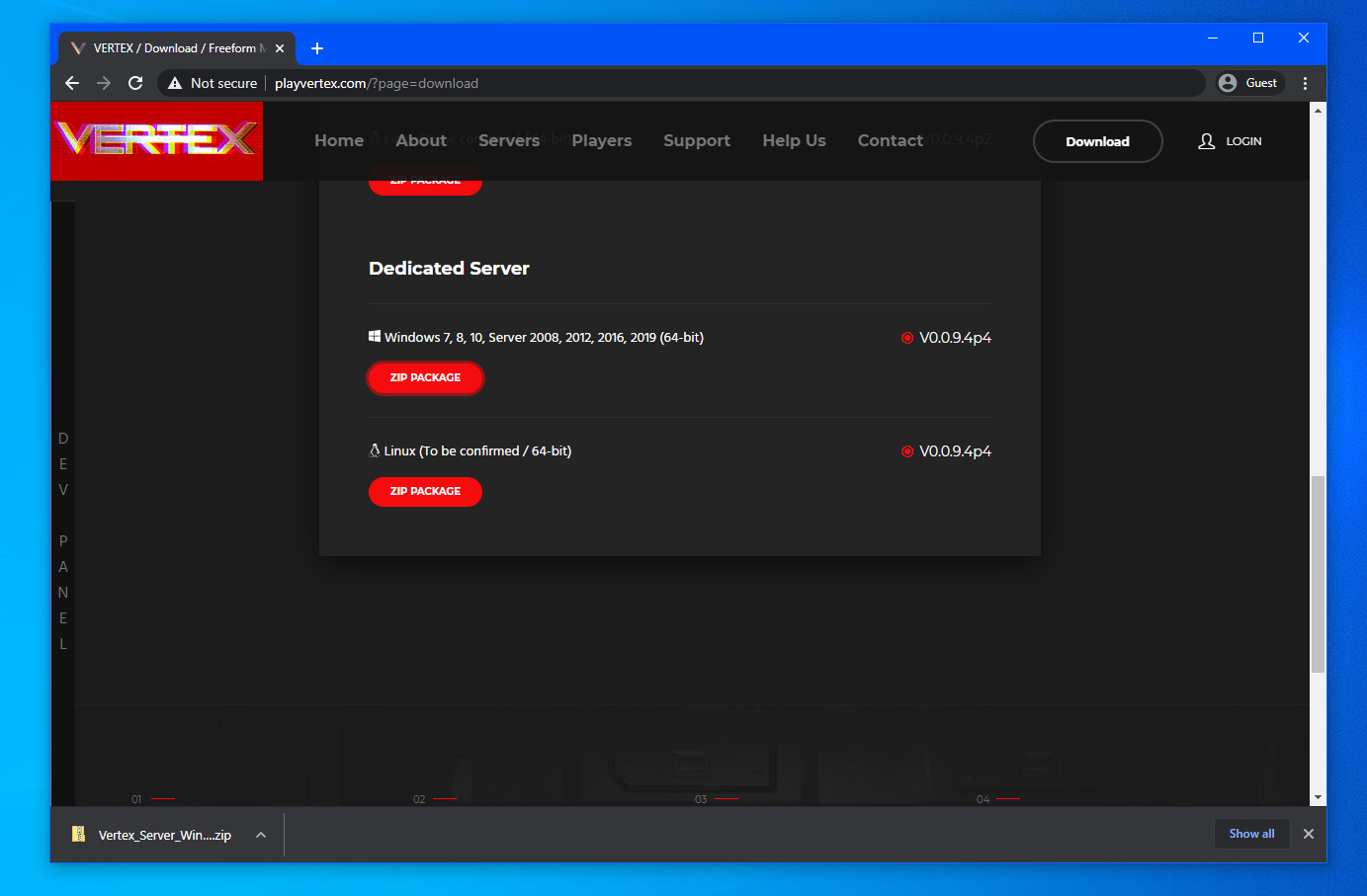 1) Download the latest server ZIP package directly from our Download page under "Dedicated Server".