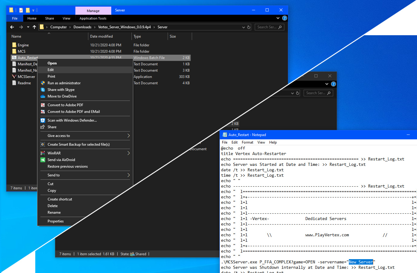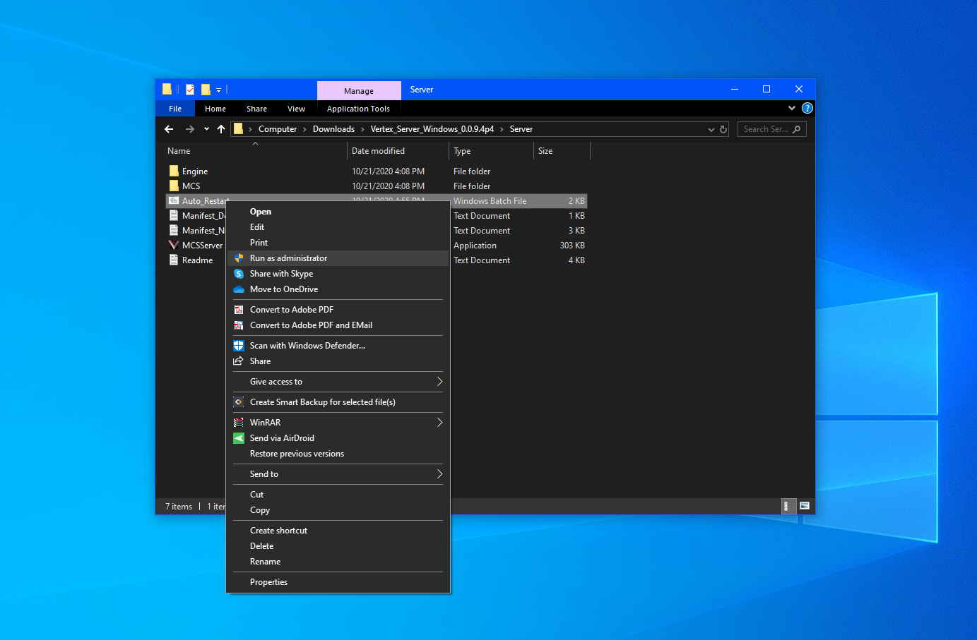 4) Once ready, simply double-click on the "Auto_Restart.bat" file (in some cases, you may need to right-click and select "Run as administrator") to start the server.