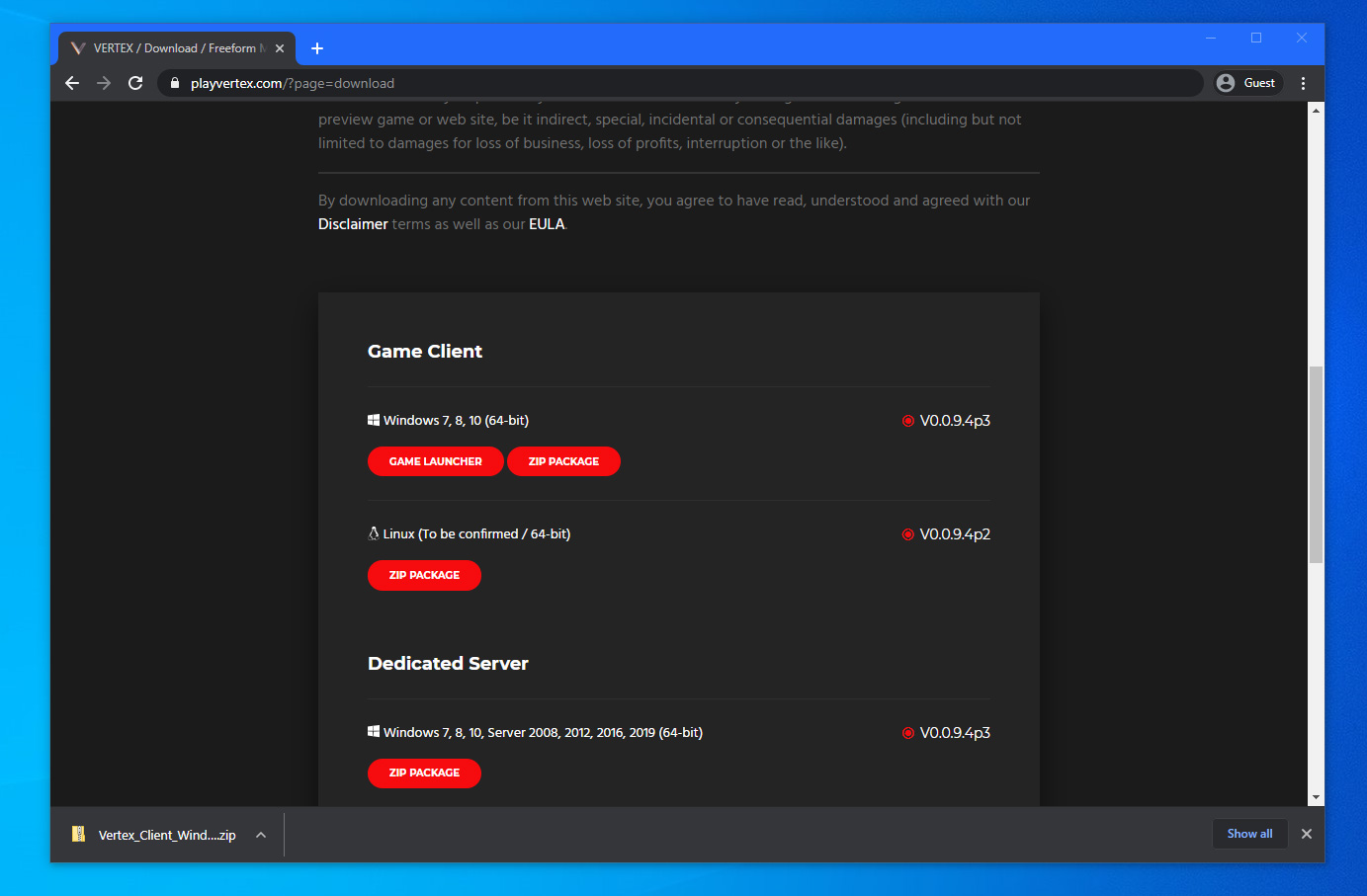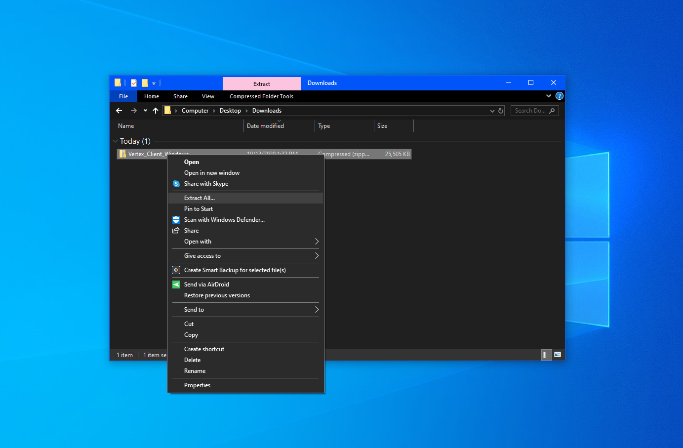 2) Once downloaded, right-click on the "Vertex_Client_Windows.zip" file and select "Extract all..." to unzip it's content.