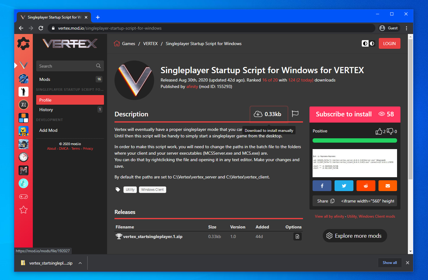 21) To make your mods available to the public, upload them on vertex.mod.io. You need to pack the .pak file and all other files that are part of the mod (for example sound files) into a .zip archive, which you then can upload to mod.io.