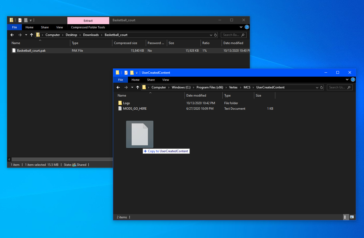 17) Put that .pak file in both the client and server "UserCreatedContent" folder.